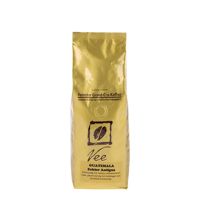 Guatemala produziert einen der weltweit besten Kaffees. Die absolute Spitzensorte, die auch Vee verwendet, heißt Potrero. Diese sortenreinen Arabica-Kaffeebohnen wachsen in der Gegend von Antigua, der früheren Hauptstadt Guatemalas. Die Kombination aus Höhenlagen bis 1.800 m ü NN, regelmäßigem Niederschlag und fruchtbarem Vulkanboden bietet ideale Anbaubedingungen für diesen Kaffee. Durch den Wechsel von sonnigen Tagen und kühlen Nächten reifen die Kaffeekirschen langsamer und verfeinern das charakteristische Geschmacksprofil. Durch die etwas dunklere Röstung entsteht ein vollmundiger Kaffee mit feiner, lebendiger Fruchtnote, gleichzeitig mit würzigen Aromen und Anklängen von Schokolade.