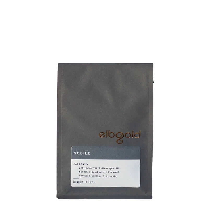Der Blend Espresso Nobile besteht zu 100% aus Arabica Bohnen. Die hochwertigen Bohnen stammen zu 75% aus Äthiopien und zu 25% aus Nicaragua. Die Mischung ist kräftig und intensiv. Besonders ist, dass die Konsistenz sehr samtig ist. Noten von Brombeere treffen auf weiches Karamell und werden perfekt abgerundet von Nuancen von Mandeln.