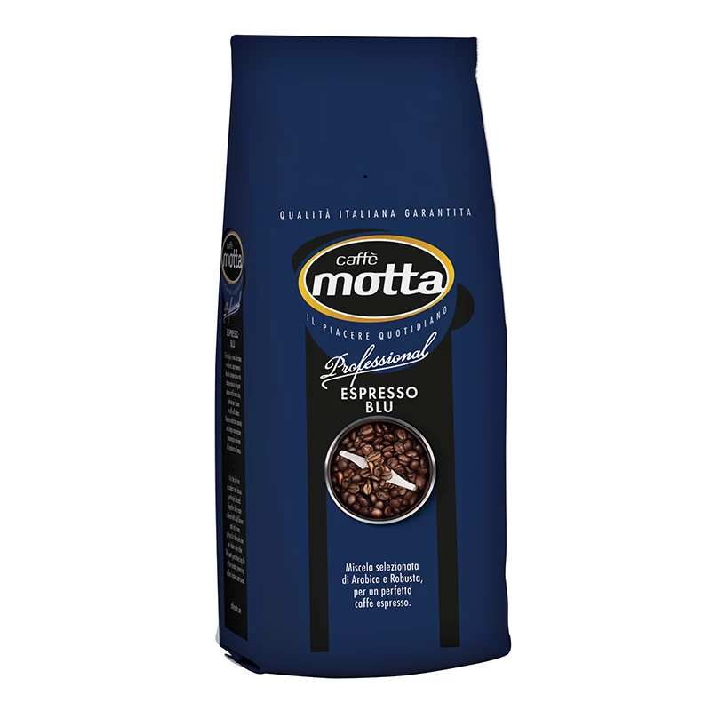 Der Caffè Motta Professional Espresso Blu in der 1000 g Packung ist ein dunkel gerösteter Espresso. Die Kaffeemischung besteht zu 10 % aus Arabica Bohnen und 90 % aus Robusta Kaffeebohnen. Durch den hohen Anteil an Robusta Bohnen ist dieser Röstkaffee besonders cremig und hat einen hohen Koffeingehalt. Mit dieser Auswahl haben Sie einen kräftigen Espresso mit einer herrlichen Crema.