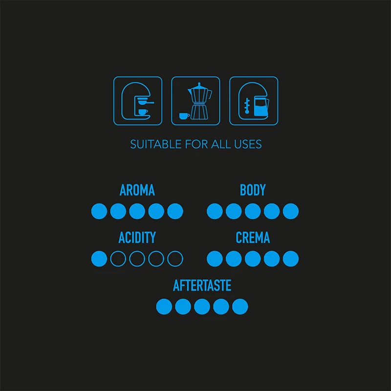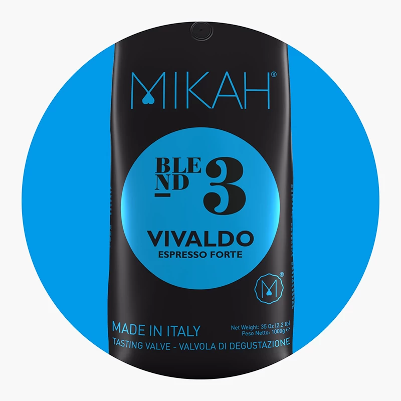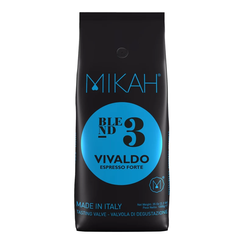 Der Vivaldo N.3 von Mikah ist ein klassischer, italienischer Espresso bestehend aus 70 % Arabica Bohnen und 30 % Robusta Bohnen. Neben fruchtigen Noten schmecken die Kaffeefans auch Noten von Schokolade in der Tasse. Dieser Nachgeschmack hält sich lange auf der Zunge und rundet das Geschmackserlebnis perfekt ab.